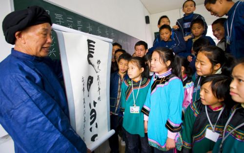 作为全国唯一的水族自治县,贵州省三都县为水书传承做了大量工作,邀请水书先生走进课堂传授水书。
