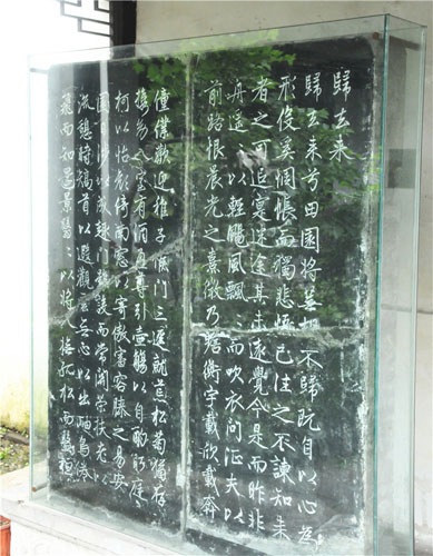 院落两侧设有碑廊,陈列了历代先贤的书法作品,其中元代书法大家赵孟頫的《归去来辞碑》也陈列其中。