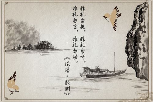 这一句话出现在颜渊问孔子何为仁的时候,孔子对自己所说的“克己复礼为仁”的进一步解答。孔子要求“克己复礼”,即克制自己的欲望,规范自己的行为,使言语行动都合乎礼仪规范。即君子是需要用礼来加以约束的,也就是上文说的“约之以礼”。怎么“约”?具体来讲,就是四个“非礼勿”,不合乎礼的不看、不听、不说、不做。将视、听、言、动都归之于礼,并不是说只在社会礼俗中循规蹈矩,而是于约束之中见心的自由,于恭敬辞让之中见心的高明,将自己的心充斥于天地,与天地相通,“天下归仁焉”。