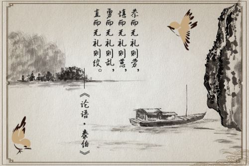 6.恭而无礼则劳,慎而无礼则葸,勇而无礼则乱,直而无礼则绞。——《论语·泰伯》